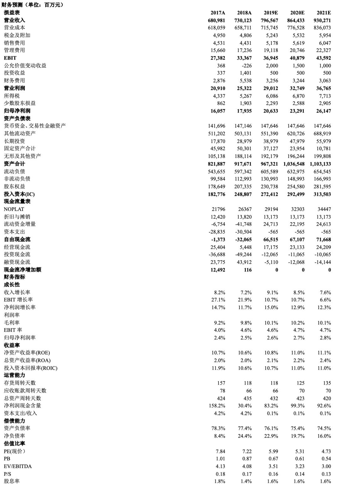 1、维持增持。公司H1营收约3529亿元/+14.2%、净利约92.8亿元(+15.9%)超预期;维持预测2019/20/21年EPS为1.52/1.72/1.93元增速15/13/12%,维持目标价14.74元,对应2019/20/21年9.7/8.6/7.6倍PE,增持。