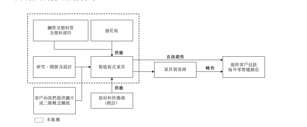 公司为客户提供全面的制造解决方案,能够设计、开发及制造功能性及经济型的板式家具、软体家具及户外家具等其他家具以及运动与休闲设备。公司收入65%来自原设计制造业务, 余下则来自原始设备制造业务。
