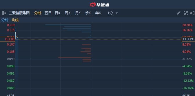 智通财经APP获悉,三爱健康集团(01889)中期业绩扭亏为盈至3.94亿人民币,截至9时35分,涨11.11%,报价0.11港元,成交额19.16万。