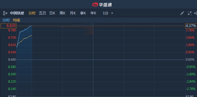 智通财经APP获悉,中国铁建(01186)于上周五(8月30日)发布中期业绩,归母净利同比增15.93%至92.84亿人民币,截至9时59分,涨4.37%,报价8.83港元,成交额3176万。