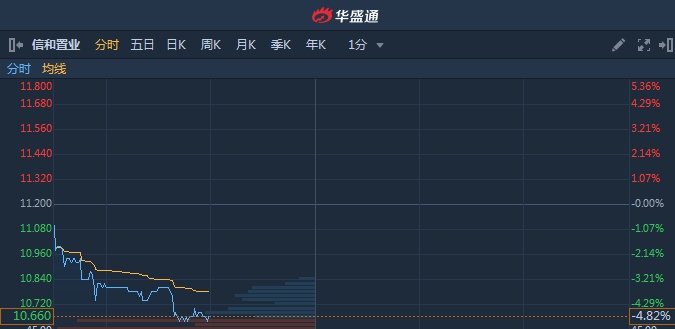截至10时58分,跌4.82%,报价10.66港元,成交额4446万。