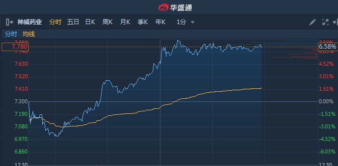 智通财经APP获悉,神威药业(02877)中期业绩超市场预期,净利同比增11.9%至2.88亿,拟派发中期股息每股11分。截至14时55分,涨6.58%,报价7.78港元,成交额3199万。