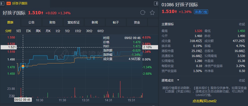 智通财经APP获悉,中金公司今日发布研报,好孩子国际(01086)2019 年上半年收入和净利润同比分别增长 0.2%和 2.1%至 44.34 亿 港元和 1.36 亿港元,每股盈利 0.08 港元,符合中金预期。该行维持“中性”评级,但考虑到国际贸易不确定性以及公司跨国业务面临的风险,下调目标价 7.5%至1.70港元 ,较当前股价存在 14.7%的上行空间。