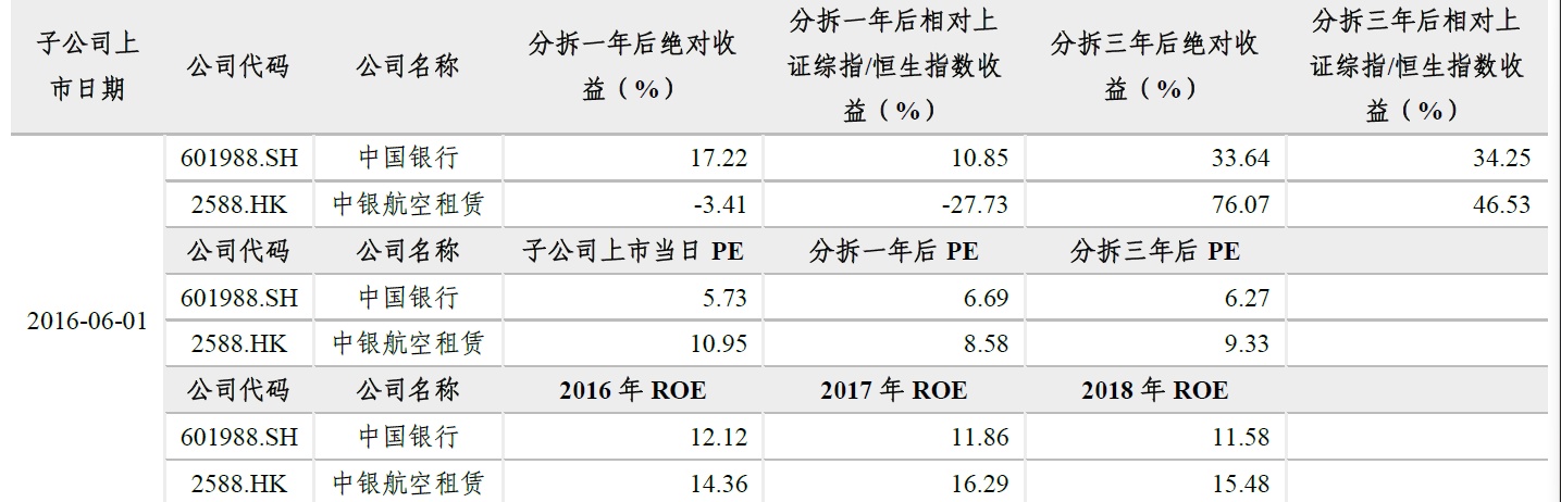表2、中国银航分拆中银航空租赁后对比