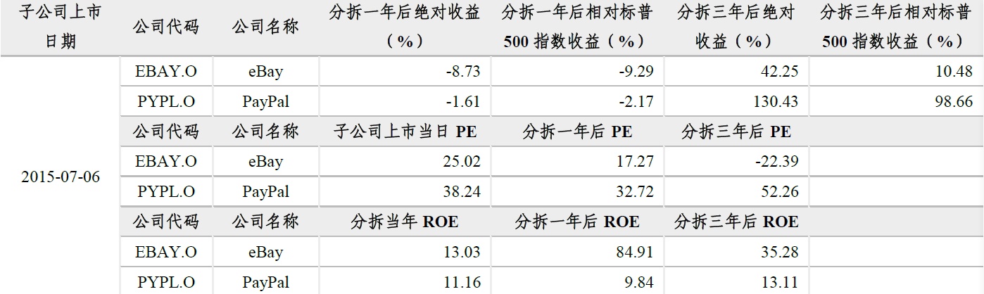 表3、eBay分拆Paypal后对比