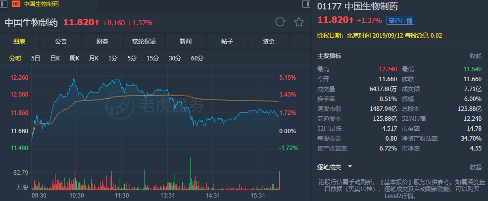 智通财经APP获悉,中金公司今日发布研报,中国生物制药(01177)公布 1H19 业绩:收入 125 亿元,同比增长28.8%;扣除收购泰德24%股权以及权益投资和金融资产未实现公允价值变动的影响,核心净利润同比增长20.5%至16.7亿元。第二季度的收入和核心净利润分别同比增长25%和18%,符合我们的预期。该行维持“跑赢行业”评级,上调目标价26%至13港元。