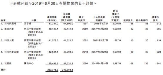 于2019年6月30日,物业中205,658.6平方米楼面面积作写字楼单位及56,720.2平方米楼面面积作商业。