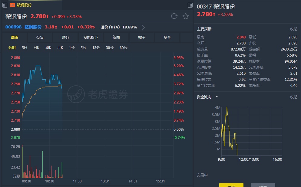 高盛称,虽然需求维持积弱,但未来数月料可见稳定,预期鞍钢下半年单位毛利在每吨432元人民币,抵销原材料成本上升,预期今明两年毛利分别为每吨431及463元人民币。