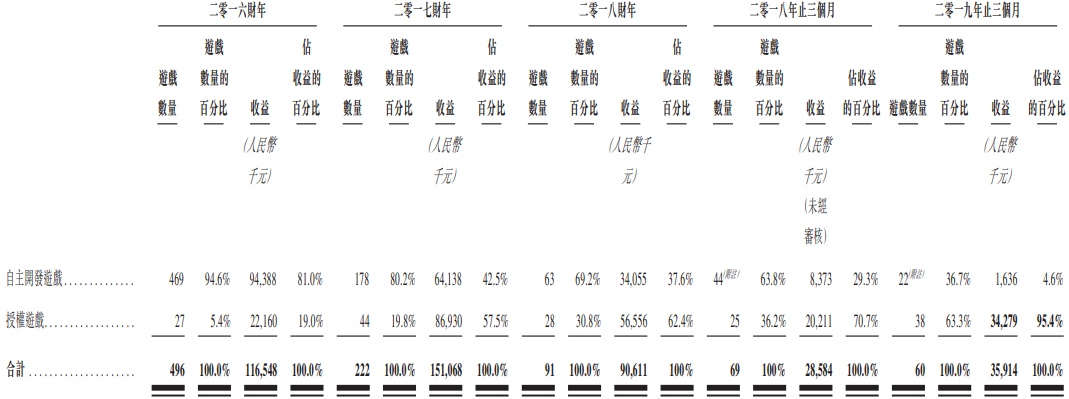 从上表可以看到2016年该公司授权游戏数量只占全部游戏数量的5.4%,到了2019年3月份,授权游戏数量占了全部游戏数量的95.4%。不单是游戏数量,游戏收入上也有类似情况。2016年五大创收手游中,来自授权游戏的收入占总游戏收入13.2%,到了2019年3月,五大创收手游中,授权游戏产生的收入占了总游戏收入的81.7%。公司对此解释这是手机游戏开发及运营与数字媒体内容经销互补,造就了他们的业务协同模式,但是从公司经销的内容来看,似乎和游戏没有关系。很难想象户外生活(该公司经销的杂志)和永恒霸业(该公司授权运营的一款游戏)能有什么关系。