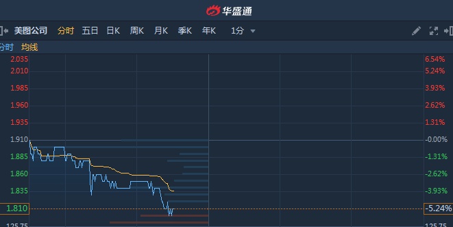 智通财经APP获悉,美图公司(01357)中期业绩逊预期,亏损达3.71亿人民币,不派息。绩后遭瑞信削50%目标价至2港元,截至11时30分,跌5.24%,报价1.81港元,成交额1932万。