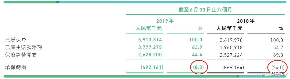 由于综合成本率的改善,承保业务亏损缩窄43%至4.92亿元,且亏损比率从24%下降至8.3%,亏损率首次降至个位数。预计公司的承保业务将会如管理层承诺的那样,在2020年实现盈亏平衡。