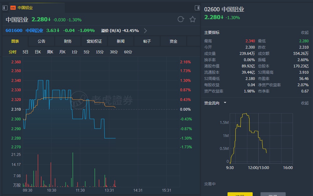 智通财经APP获悉,高盛发表的报告称,中国铝业(02600)上半年纯利为7.06亿元人民币,下跌14%,每股盈利跌16%至每股0.041元人民币,如去除一次性收益,期内经营亏损为1.71亿元人民币,表现好过该行预期,但逊市场预期。该行将公司2020年盈利预测下调9%,目标价由3.2元降至2.8元,维持“中性”评级。