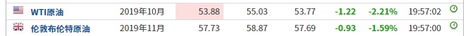 全球经济表现不佳及紧张的国际局势削弱了市场对原油需求增速的预期,此外,8月份石油输出国组织(欧佩克)产量增加,是欧佩克与俄罗斯和其他产油国是今年来首次,令原油市场持续承压。截至发稿,WTI原油跌2.21%,报53.88美元/桶。布伦特原油跌1.59%,报57.73美元/桶。