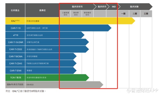 实际上,公司的产品链覆盖非基因改造细胞、基因改造细胞、肿瘤多靶点治疗细胞、肿瘤单靶点治疗细胞等主要肿瘤细胞免疫治疗产品。除EAL产品外,公司的主要在研产品包括CAR-T细胞系列药物和TCR-T细胞系列药物等。