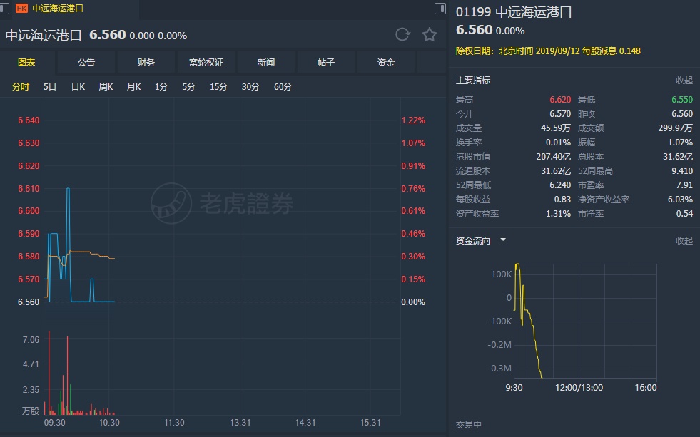 智通财经APP获悉,中金公司今日发布研报称,中远海运港口(01199)维持“跑赢行业”评级,但下调目标价11.4%至8.76港元。2019年上半年业绩低于预期:2019年上半年收入同比增长4.5%至5.18亿美元;归母净利润同比下降12.5%至1.478亿美元(0.05美元/股),主要受到一次性项目的负面影响(KHFRS租赁准则影响600万美元,以及青岛港国际A股上市摊薄影响2255万美元)。
