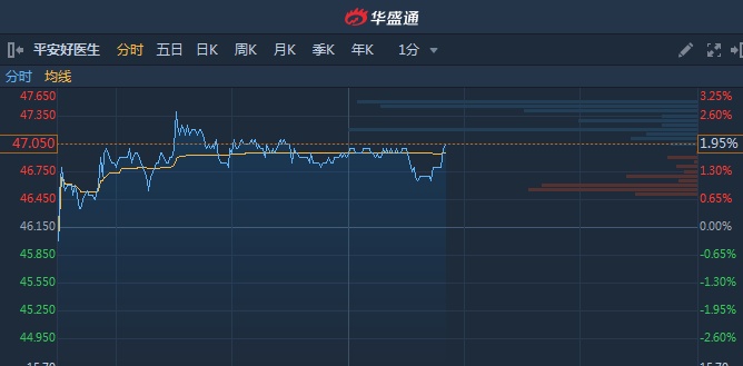 港股异动︱午后现大手成交涉资2.21亿 平安好医生(01833)涨近2%