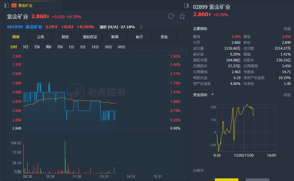 智通财经APP获悉,高盛下调紫金矿业(02899)2019至2021年盈利预测13%、5%及25%,以反映金价上升的预期大部份被黄金数量下降、上半年锌现金成本上升,以及管理及财务成本上升所抵销。该行下调对其目标价7%,由4.3元降至4元,维持“买入”评级。