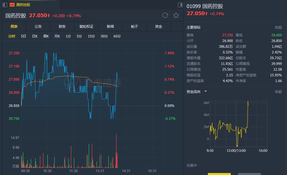 该行补充,国药上半年收益及EBIT(息税前利润)分别升23%及20%,纯利则因一次性拨备拖累而升6%,预期2019至2021年每股盈利预测年复合增长率为12%。