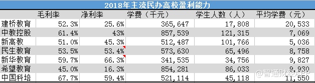 从上表可以看出,建桥教育的毛利率和净利率并没有特别亮眼,但是平均学费却是最贵的。与中国科培(01890)对比,其学费只有建桥教育的一半左右,但是中国科培的毛利率还要高出15个百分点,净利率高出33个百分点。