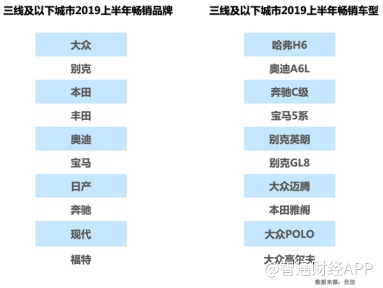 下沉市场爆发不仅体现在“量”上,同样体现在“质”上。去年同期,三线及以下城市的畅销品牌TOP10排行榜中,多为经济实用品牌;但今年上半年,传统高端品牌奔驰、宝马、奥迪悉数入围。而在畅销车型排行榜上,除“国民神车”哈弗H6继续独占鳌头外,奥迪A6L、奔驰C级、宝马5系紧随其后。