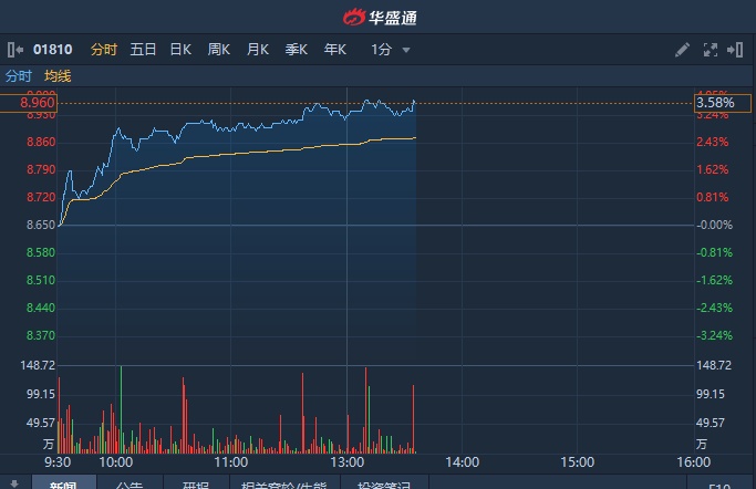 智通财经APP获悉,小米集团(01810)发布股份奖励计划,董事会根据股份奖励计划奖励合共34,991,749股奖励股份予457名选定参与者,总价值逾3亿港元。截至发稿,涨3.35%,报8.95港元,成交额3.91亿港元。