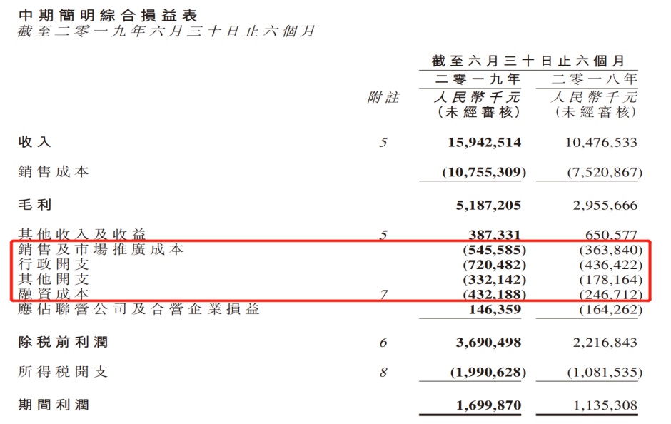 由于费用急速增长,公司上半年销售净利润率为10.66%,低于上年同期的10.84%和2018年全年的14%。