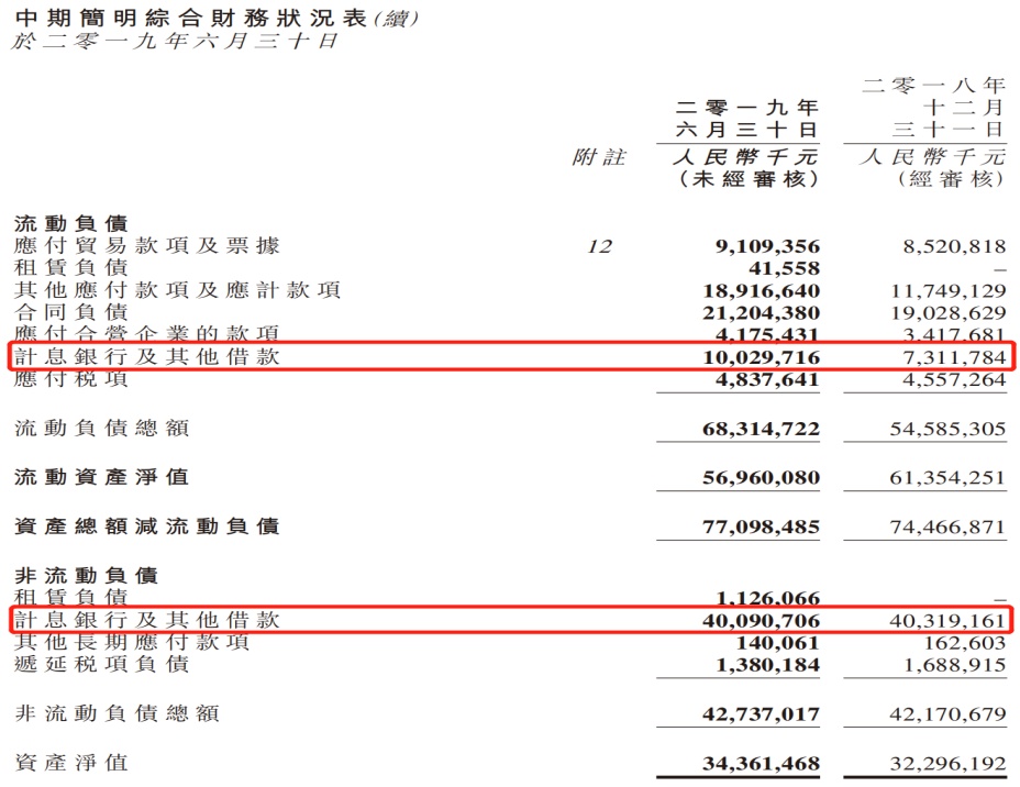 时代中国资产负债表显示,2019年上半年公司流动资产中,预付款土地租赁款项大幅增长至30.31亿元,开发中物业由404.32亿元增长至410.11亿元,此外营收合营/联营公司款项也出现不同程度增长。这些科目均在增加对时代中国资金的占用,也意味着公司上半年或许和往常一样有赖于融资活动为日常经营“输血”。