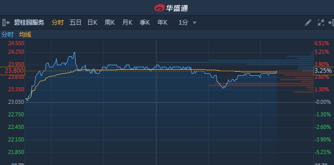 智通财经APP获悉,碧桂园服务(06098)中期业绩超预期,净利润同比增73.41%至8.17亿人民币。绩后获大和重申“买入”评级,目标价看高至25.1港元,截至15时17分,涨3.25%,报价23.8港元,成交额1.693亿。