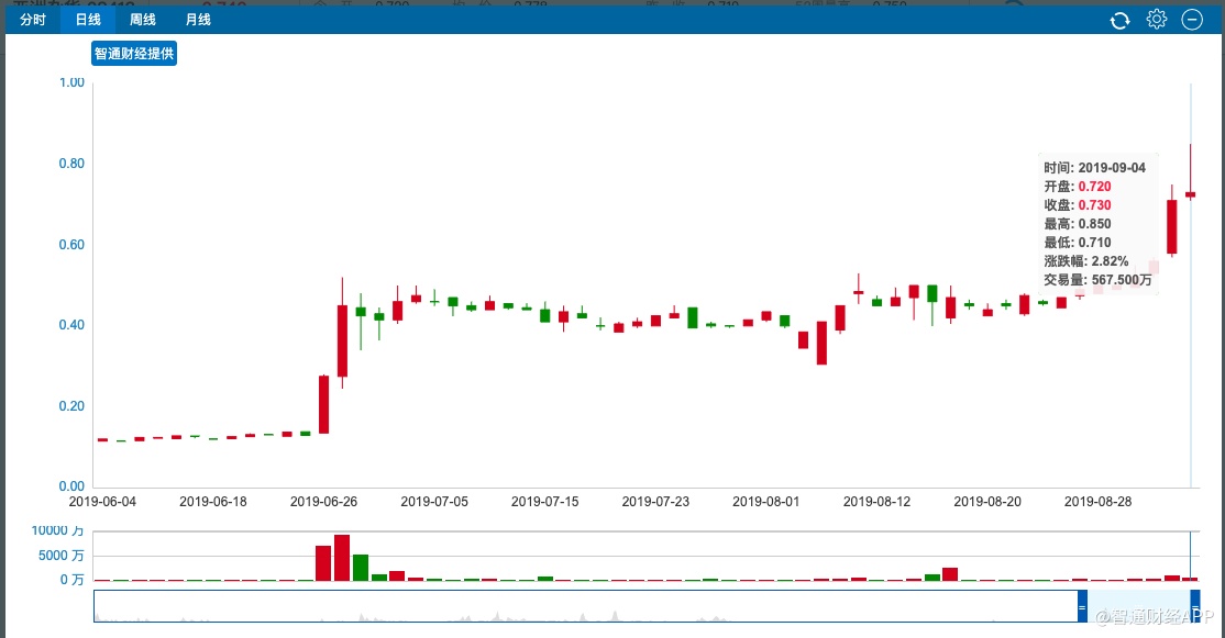 实际上早在今年六月底,香港上市公司亚洲杂货(08413)就公告称,已与上海鹊海生物科技合伙企业(上海鹊海)就可能收购事项订立谅解备忘录,拟向上海鹊海收购卡替(上海)生物技术股份有限公司已发行股本的部分百分比。公告发布至今亚洲杂货市值一度翻逾八倍(如图)。市场认为一旦该项收购落定,将提升亚洲杂货资本配置效率,其市值亦有充足增长空间。