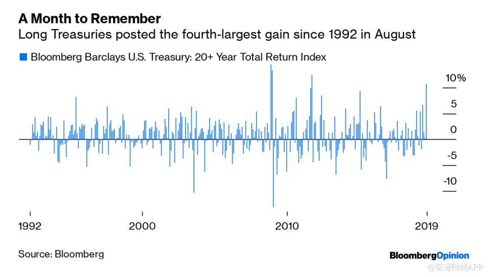 Chappatta认为,基于美债市场在8月份的表示,今日收益率涨幅意义并不重大,那些密切跟踪世界最大债券市场波动的人似乎同意这一点。不管怎么样,在过去的27年中,本月是做多债券收益最高的月份之一(注:债券收益率与价格成反比)。