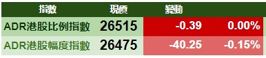 智通财经APP获悉,周二美股强势收涨,但港股ADR指数微调,按比例计算,收报26515点,跌0.39点。汇丰控股收报57.69元,较港收市涨0.19元;腾讯控股收报342.61元,较港收市涨1.21元。