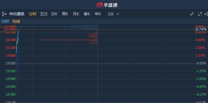 智通财经APP获悉,中兴通讯(00763)港股通持仓比例大幅提升,早盘AH股同步上涨,截至9时34分,涨6.23%,报价20.8港元,成交额8641万。