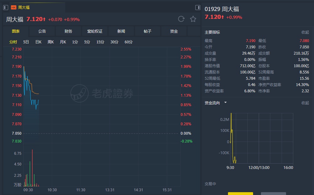 智通财经APP获悉,花旗发表研究报告称,周大福(01929)8月份的香港同店销售增长将比7月差。但该行相信,公司关店及去库存等将有助支持派息;加上,公司强化产品能力及增加店铺渗透,预期公司的内地业务增长前景稳固,予“买入”的投资评级,目标价9.4元。