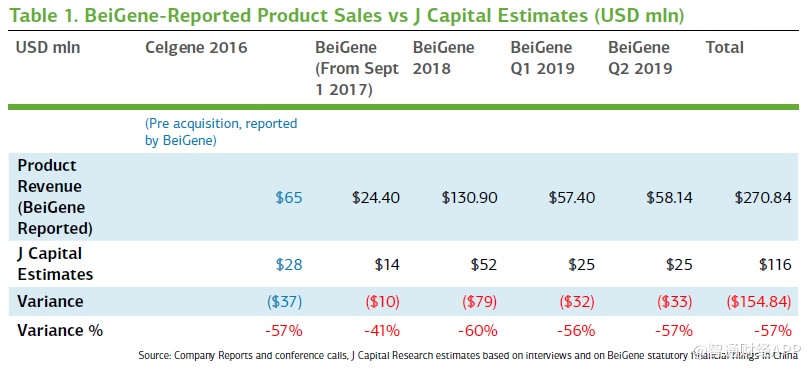 我们相信,百济神州在销售额方面撒了谎,因为我们采访了购买这些药物的中国分销商和医院,所有这些机构提供的Celgene药物销售估计数据都远低于该公司声称的水平。然后,我们查看了百济神州在中国运营公司的财务报表,发现了返销的证据,从而得出了我们的收入估算。