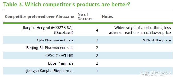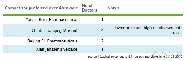 所有受访的10名医生表示认同,并说他们会给病人一个选择,但大多数病人都选择了最便宜的处方药。更便宜的国产药物对Celgene在中国的增长是一个挑战。