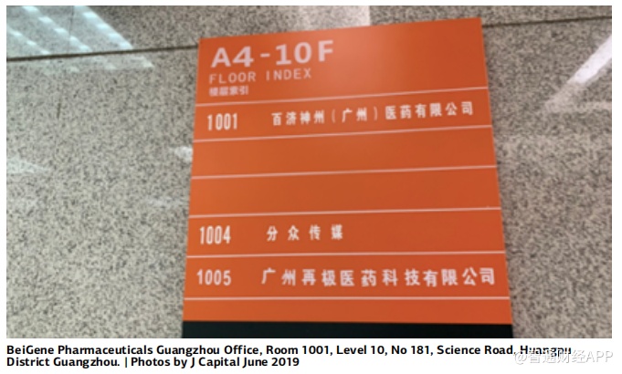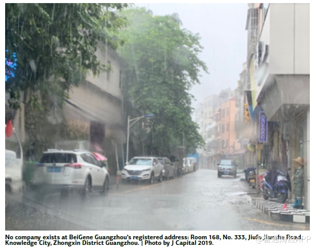 广州百济神州成立于2017年7月11日,被百济神州描述为“医药科研公司”。但我们走访了它的注册地址,发现没有这家公司——事实上,这个地址根本不存在;广州百济神州注册地址的街道上没有第333号。该公司提交给国家工商行政管理局(SAIC)的年度报告显示,公司的员工数为零。重要的是,百济神州广州分公司在2017年以及2018年香港上市前均未接受审计。