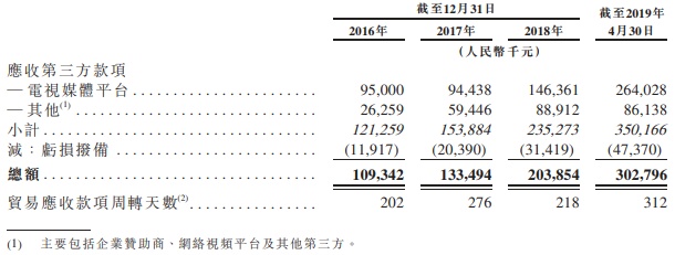 根据智通财经APP了解,煜盛文化2018年总资产3.7亿,其中占比最大的资产是贸易应收款项2.04亿,占总资产55%。根据煜盛文化披露的附注,应收款主要来自电视媒体平台。