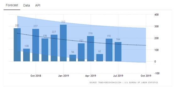 Trading Economics另预测,到本季度末,美国的非农就业人口预计将达到17.9万人。展望未来,预计美国的非农业就业人数将在12个月内达到16.9万人。长期来看,美国的非农业就业人数预计将在2020年达到170万左右。