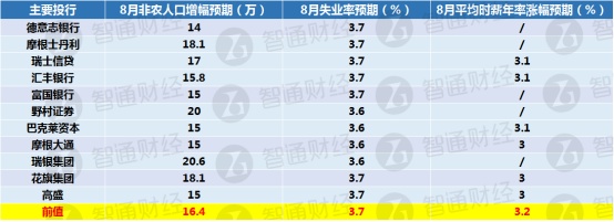 从目前情况来看,预测8月非农强劲的投行有5家,而预测有回落的投行有6家,其中德银看低至14万。