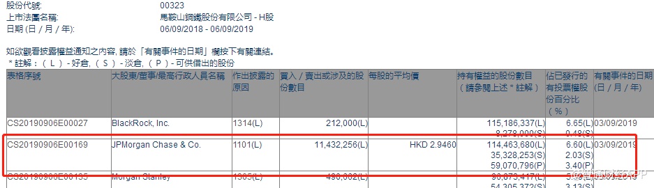 智通财经APP获悉,联交所最新资料显示,9月3日,摩根大通增持马钢股份(00323)1143.2256万股,每股作价2.9460港元,总金额约为3367.94万港元。增持后最新持股数目约为1.14亿股,最新持股比例为6.6%。