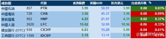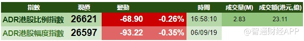 智通财经APP获悉,隔夜美股三大股指涨跌不一,港股ADR指数小幅下跌,按比例计算,收报26621点,跌68.9点。汇丰控股收报57.86元,较港收市跌0.04元;腾讯控股收报343.22元,较港收市跌0.18元。