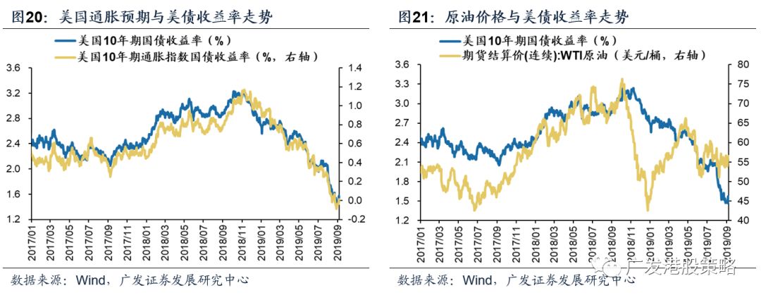 本周(9.2-9.6)人民币兑美元汇率保持稳定,10年期美债收益率小幅上涨至1.56%,中美利差小幅收窄至147BP。WTI原油价格56.2美元/桶。恒生指数PE 9.63倍,低于历史均值。本周(9.2-9.6)彭博对于恒生指数与国企指数19年EPS增速一致预期小幅上调。本周(9.2-9.6)北上资金大幅净流入280.1亿元,南下资金净流入85亿元,港股成交额中南下资金参与占比上升。美元、美债利率上行;国内信用收紧;盈利不达预期、贸易格局恶化。