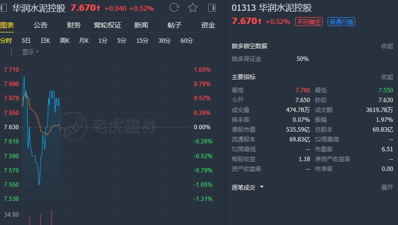 该行预期润泥的平均售价于长期会维持强劲,因为广东及广西的需求每年上升逾4%(受惠于大湾区建设需求),但供应仅上升少于2%。润泥现价相仅当于2019年预测市盈率6倍,股息回报率达7.7%,因此将华润水泥纳入该行“买入”名单,评级“跑赢大市”,目标价由11港元升至12港元。