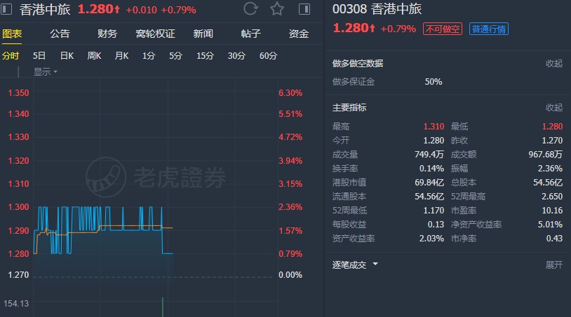 该行将公司2019-2021年纯利预测下调4-9%,以反映香港旅游下行风险,目标价由2.5元下调至1.9元。不过,该行认为中旅估值吸引,2019年预测市净率仅0.4倍,股息回报率达4%,因此维持该股“买入”评级。
