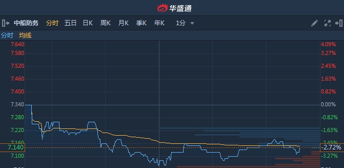 智通财经APP获悉,中船防务(00317)遭小摩削至“减持”评级,目标价看淡至5.9港元。截至15时37分,跌2.72%,报7.14港元,成交额1003万。