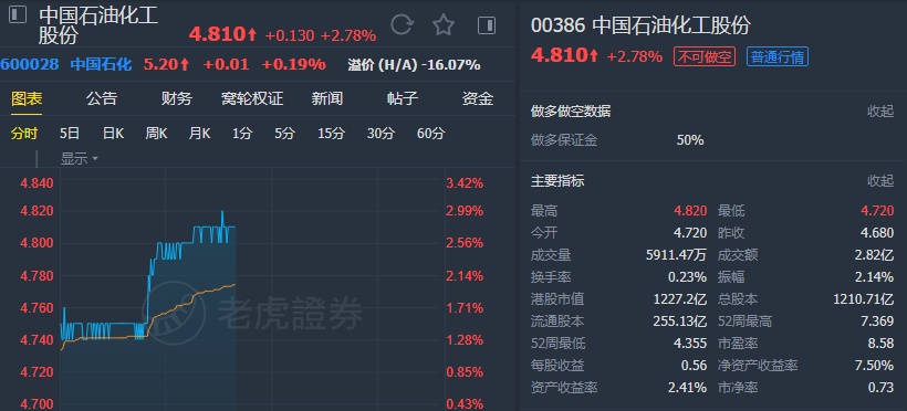 该行表示,预计中石化长远股息会维持在每股0.3元人民币,低于市场预期,但仍有7%收益率,意味2019至2023年的派息比率平均为62%。微降中石化目标价,由原来的5.9港元下调至5.8港元,维持其“买入”投资评级。