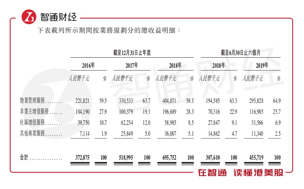 根据时代邻里招股书,公司业务主要分为物业管理服务、非业主增值服务、社区增值服务及其他专业服务四大板块。截至2019年6月30日,时代邻里有210个在管项目,包括位于中国15个城市的物业管理项目(包括住宅小区、工业园、商业物业及写字楼、多功能综合体、政府大楼、公共设施、机场及教育机构以及市政环卫项目),在管物业总建筑面积逾4270万平方米。