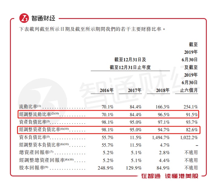 可见,时代邻里的发展模式与其他大型物业管理公司的发展模式别无二致,即为母公司物业提供管理服务加外延并购。然而,在发展过程中时代邻里采取的是高杠杆模式,2016年至2018年公司经调整资产负债比率均在90%以上,2019年上半年经调整资产负债比率仍高达82.6%。