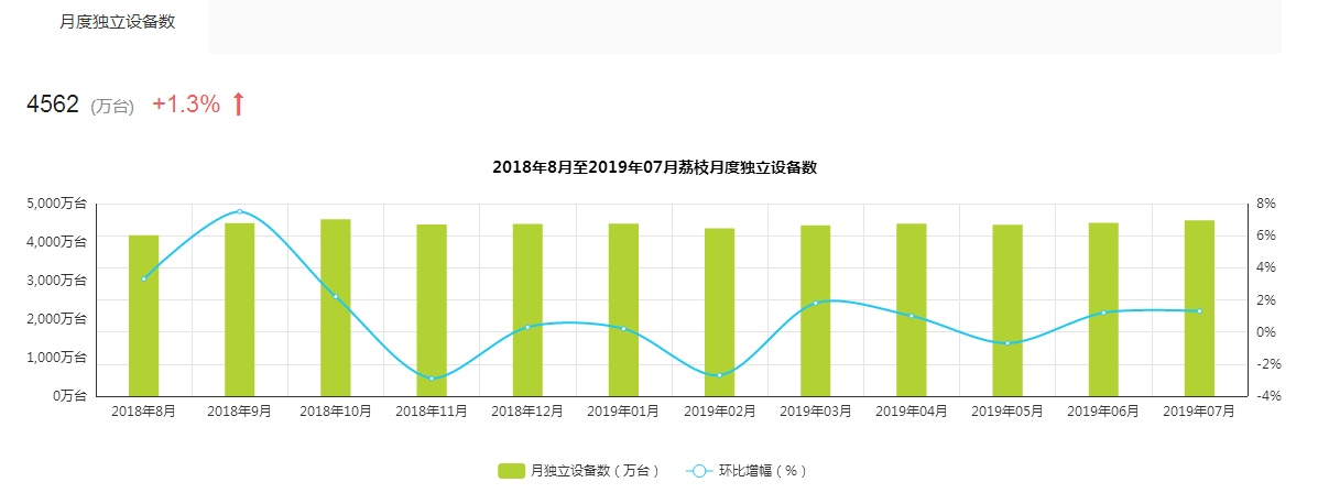 根据艾瑞咨询数据显示,从2018年8月至2019年7月,荔枝的月活跃用户数已散失了增长动力,趋于稳定,且个别月份环比出现负增长。而荔枝用户停止增长的原因主要有两个,一是整个网络音频市场的用户增长已降至个位数水平,行业用户增速由高档向低档切换;二是荔枝的UGC模式与喜马拉雅的“PGC+UGC”模式相比,引流效果相对较弱。如何让用户重回增长轨道,或许是荔枝也比较焦急的问题之一。