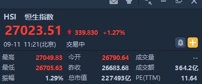 智通财经APP获悉,香港本地股放量直线拉涨,恒指涨超350点,收复二万七关口。截至发稿,中银香港(02388)涨4.03%,报28.4港元;恒隆地产(00101)涨3.36%,报18.46港元;新世界发展(00017)涨3.34%,报10.52港元;长实集团(01113)涨2.98%,报57.1港元。
